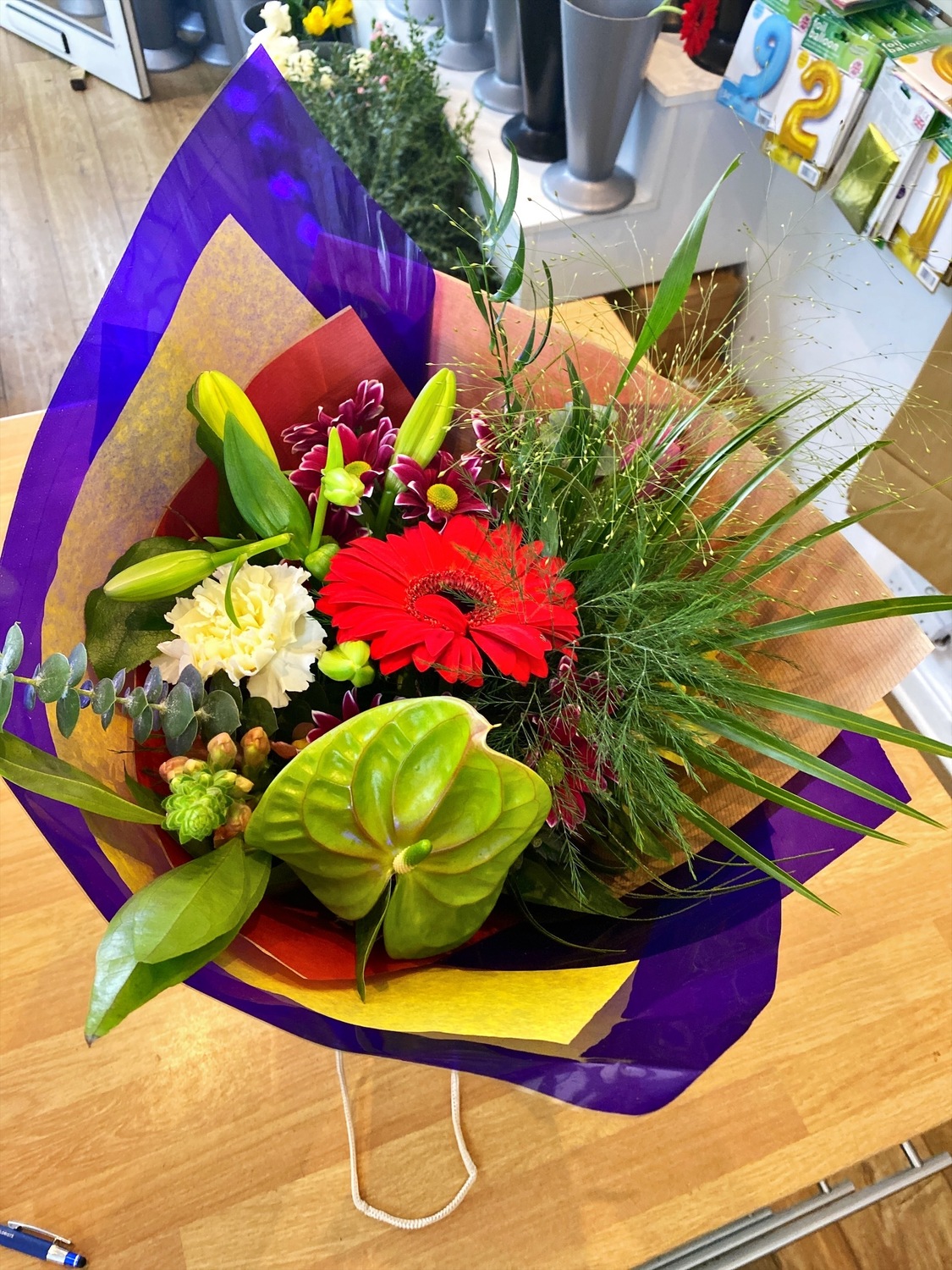 Classic bouquets are just enough when you want to convey a simple message. Colours to suite. This bouquet comes with lily, anthurium, gerbra, carnations, crysanthamum, foliage.