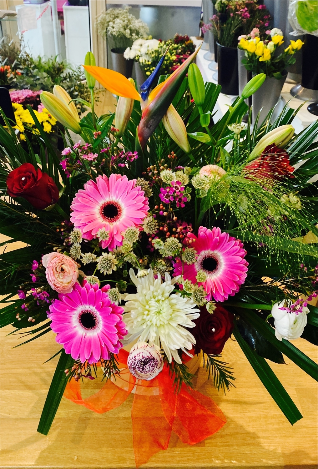 This is an example of our top of range superior plus, bespoke boxed arrangements. Already in water so the person receiving your wonderful gift can just display their wonderful flowers in the home. The only flower care is add water daily.